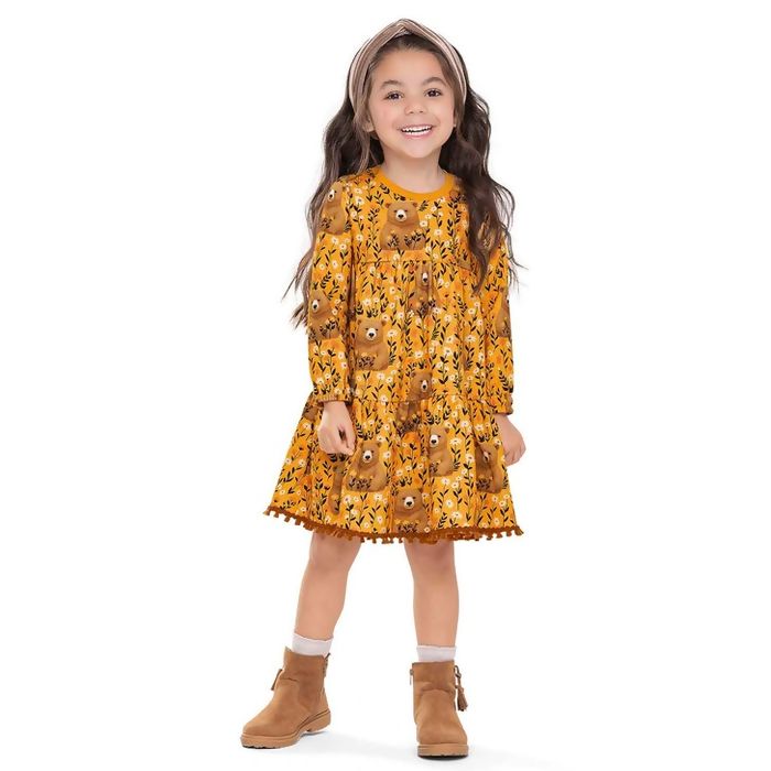 Descrição Vestido Feminino 4 a 8 Ursos Manga Longa Nanai | 6000470I