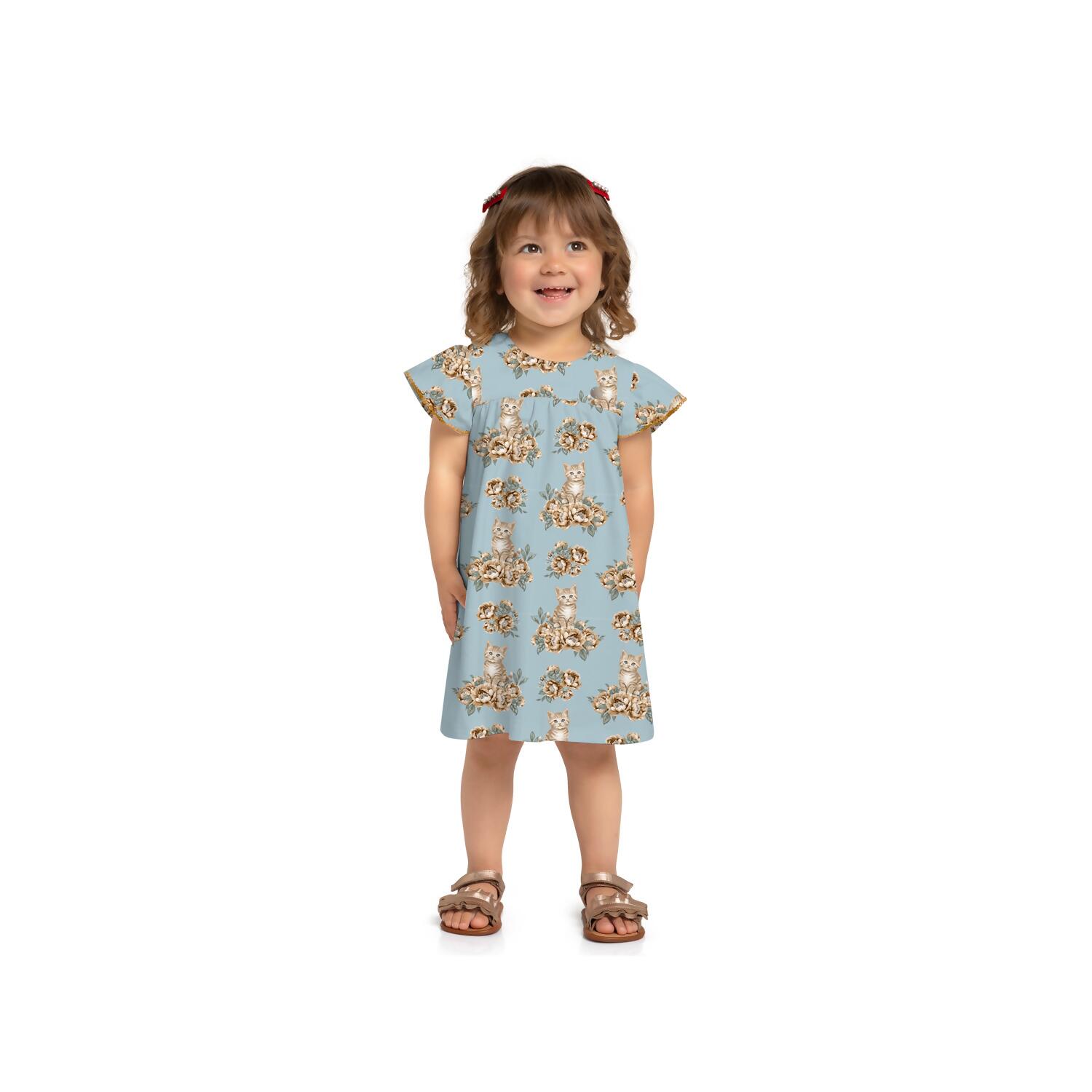Vestido Milon para bebês, com estampa alegre de gatinhos e tecido com toque suave. A modelagem foi pensada para garantir conforto e liberdade de movimentos, com detalhes que encantam na vitrine e conquistam pais e cuidadores.