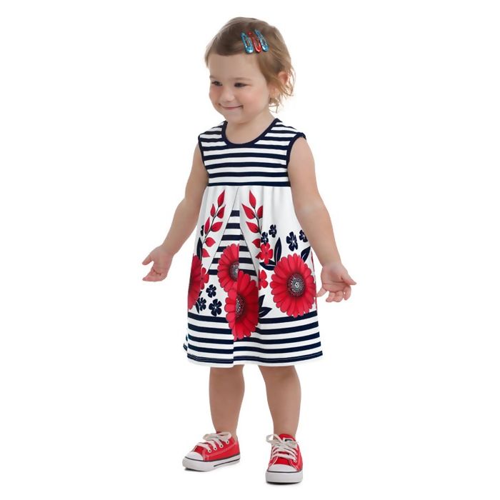 Com estampa de girassol que transmite alegria e delicadeza, esse vestido infantil Kyly é perfeito para compor looks leves e encantadores. Ideal para os dias ensolarados, une conforto e estilo em uma só peça!