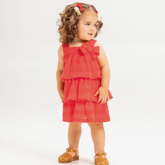 Vestido Dila Primeiros Passos com babados 3 Marias, leve, confortável e cheio de charme para as pequenas. Consulte nossa equipe de vendas.