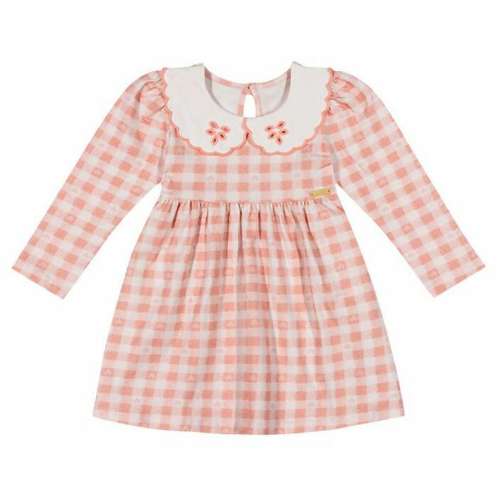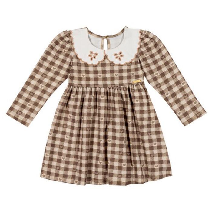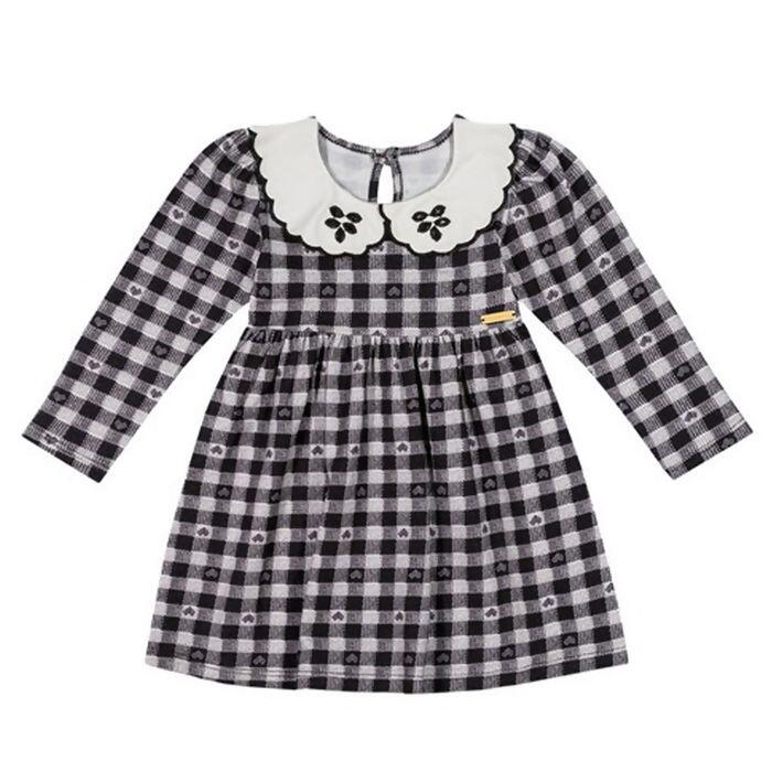 Vestido Infantil Colorittá - Manga Longa com Estampa Xadrez e Gola Boneca Bordada