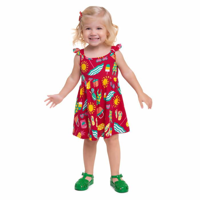Descrição Vestido Infantil Estampado Praia 4 ao 8 Kyly | 112538