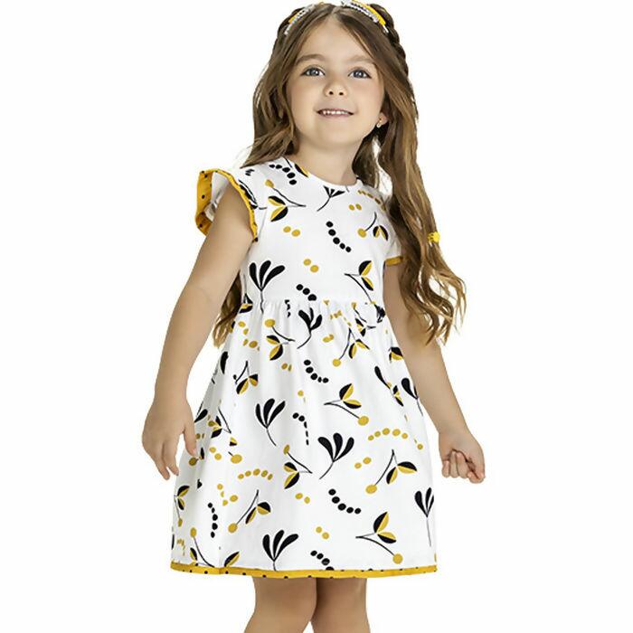 Vestido Manga Babado Infantil Kyly ¿ Cotton 96% Algodão com Estampa de Florzinhas e Bolinhas