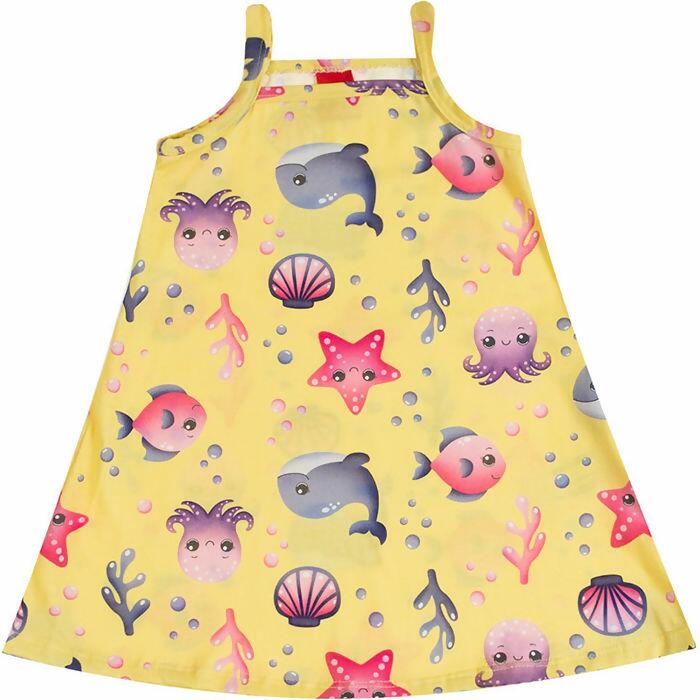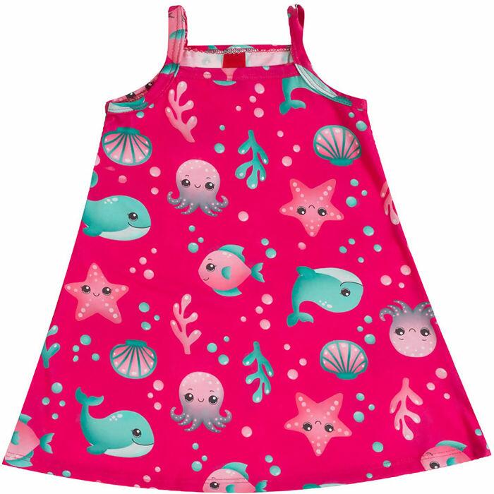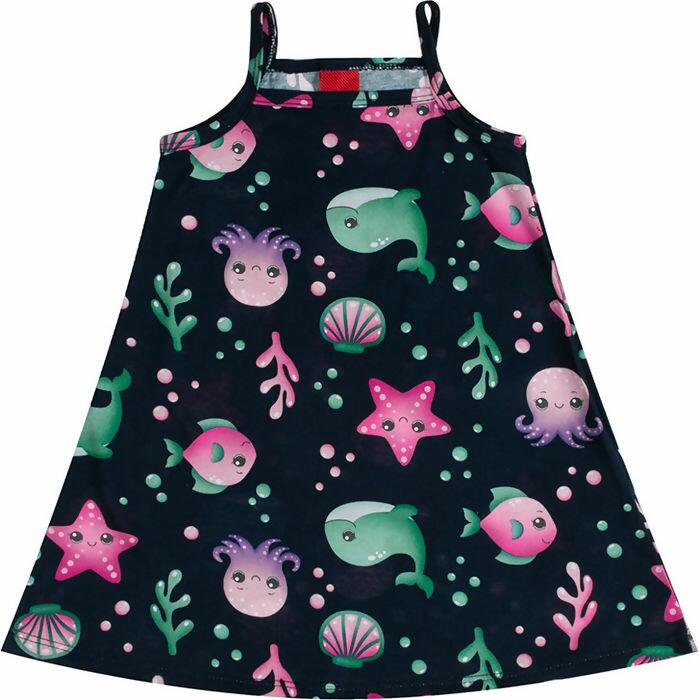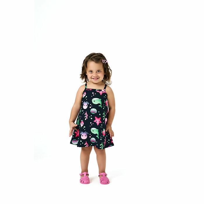 Descrição Vestido Primeiros Passos Alca Animais Marinho 1 ao 3 Kyly | 1000973