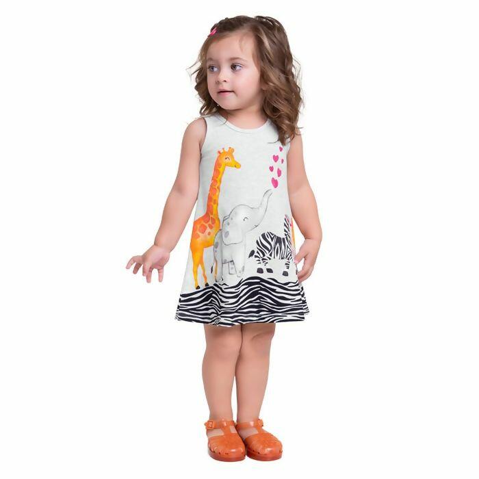 Vestido Primeiros Passos com estampa safari encantadora, confeccionado em malha leve e macia para acompanhar o dia a dia das pequenas com conforto e estilo. Com caimento soltinho e detalhes delicados, é a escolha ideal para momentos de diversão com muito charme!