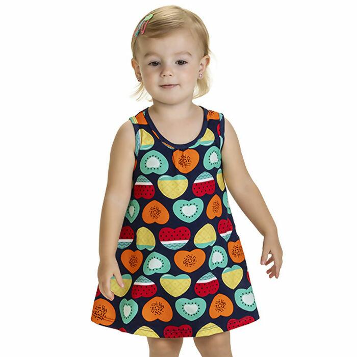 Vestido Infantil Regata Kyly ¿ Malha 100% Algodão com Estampa de Frutas em Coração